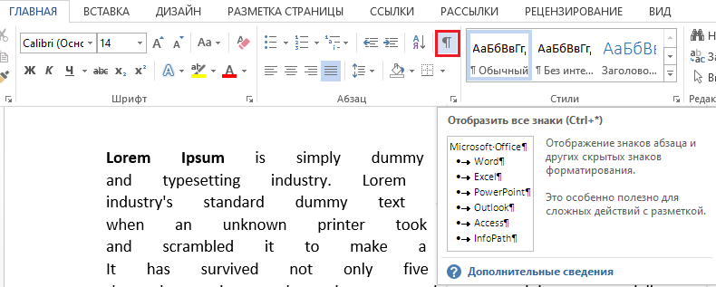 Убрать значки пробелов в ворде