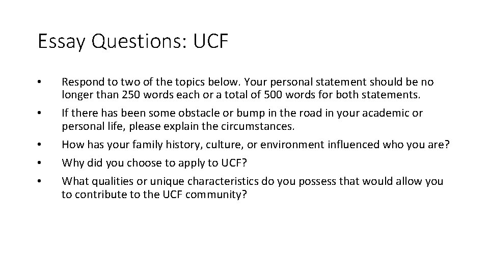 FAQ:Does UCF have specific essay or personal statement topics?
