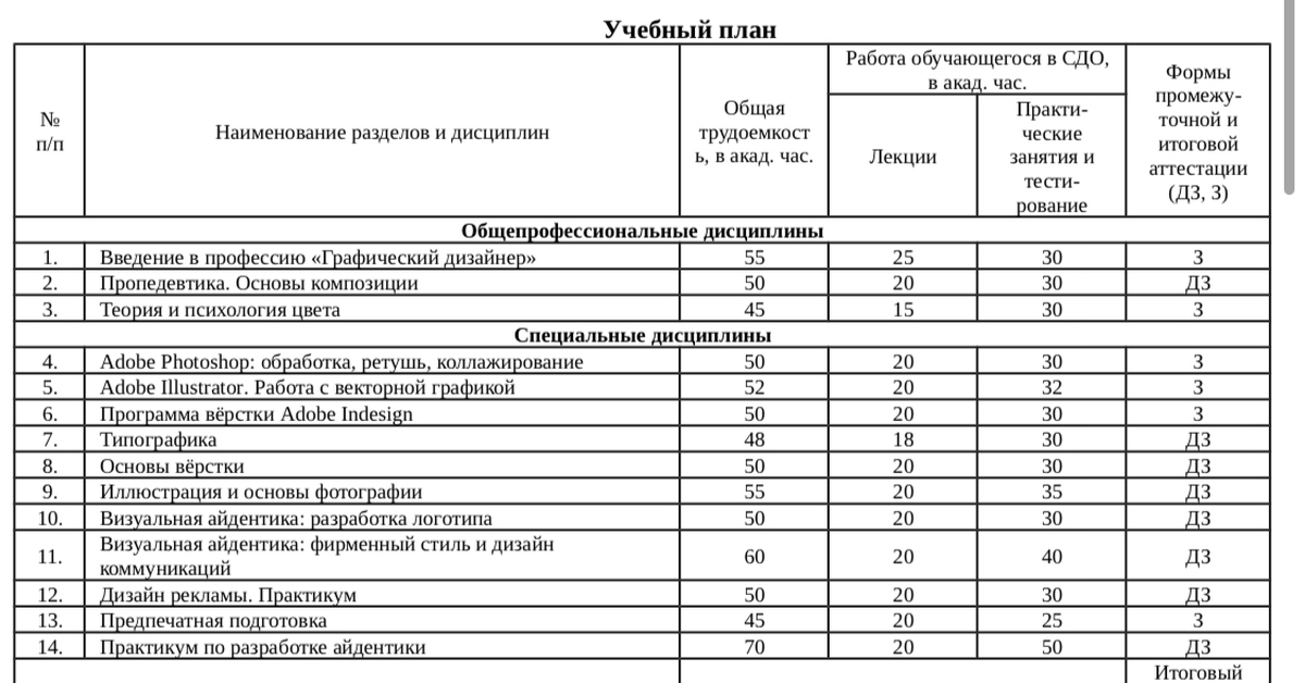 Учебный план продавец