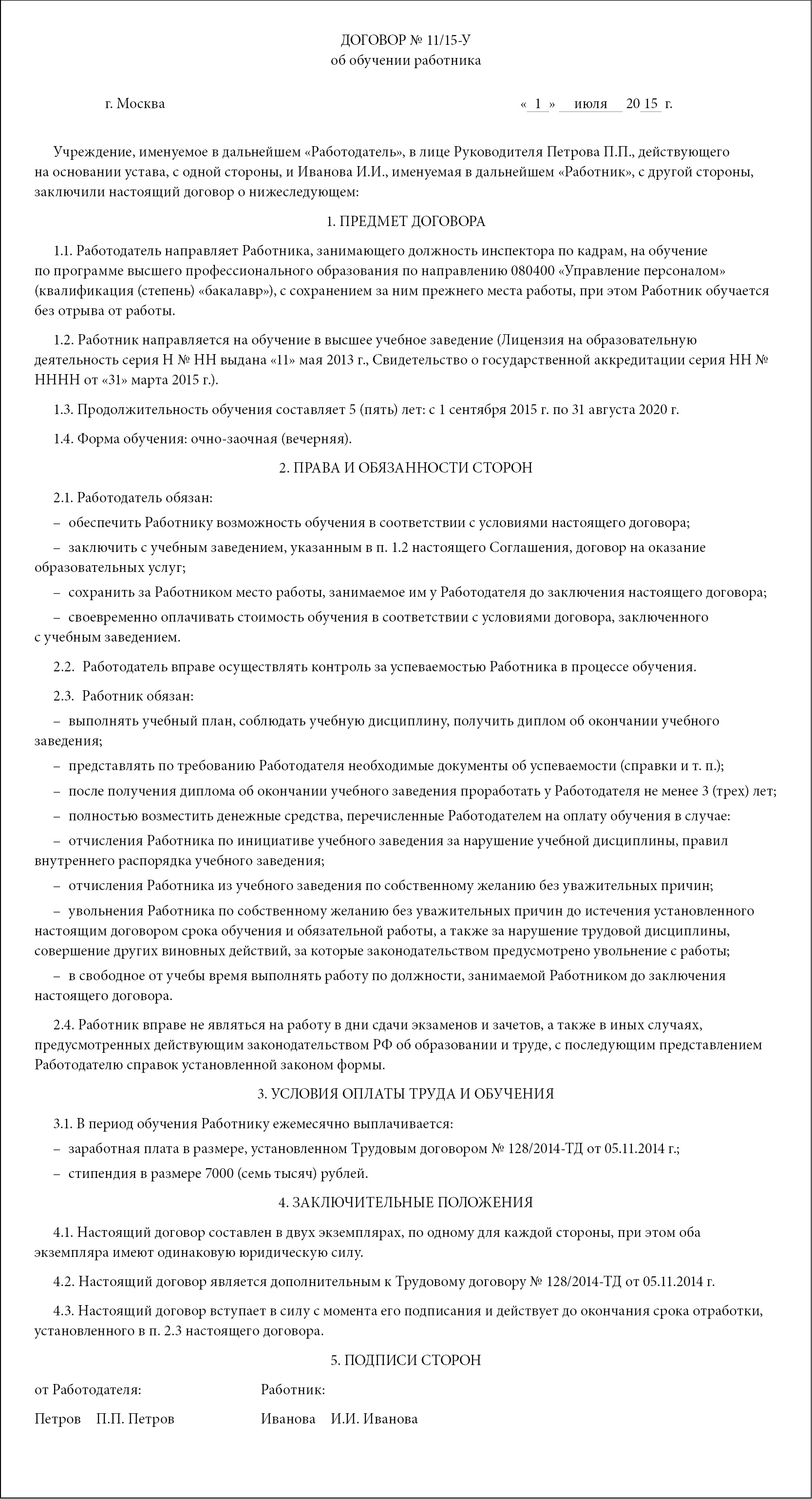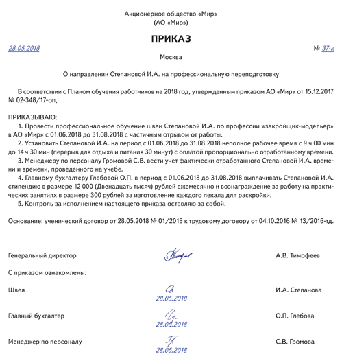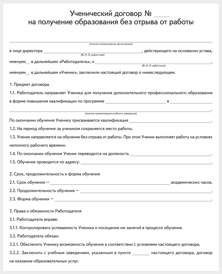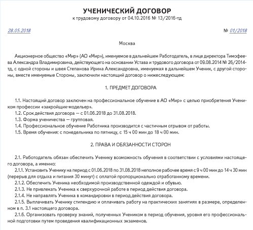 Ученический договор статья