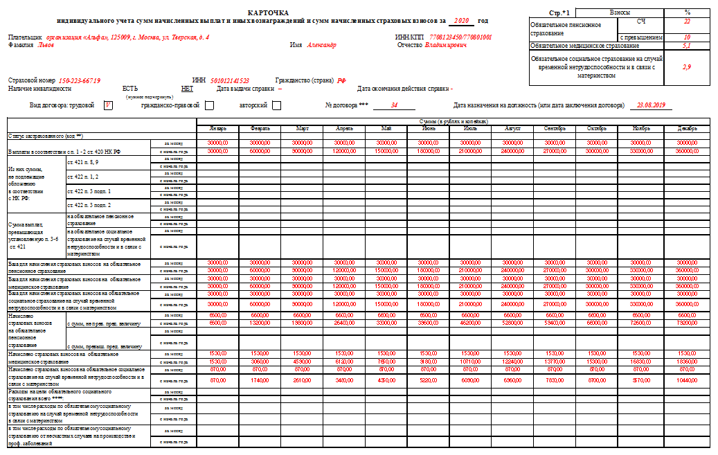Учет страховых взносов пример