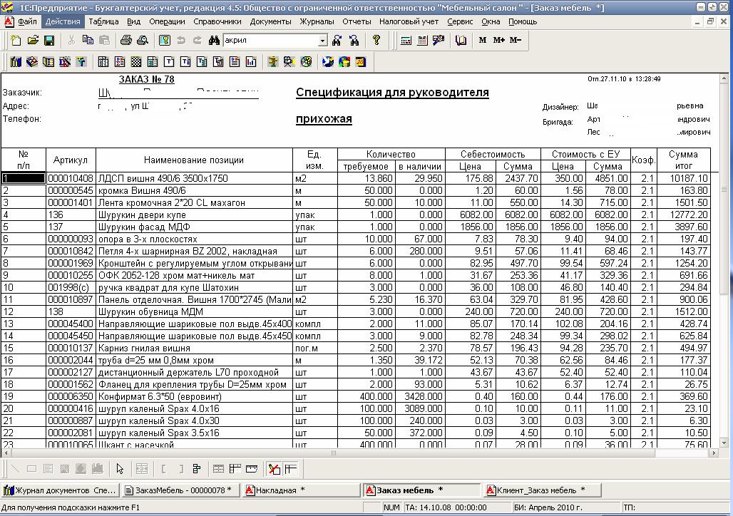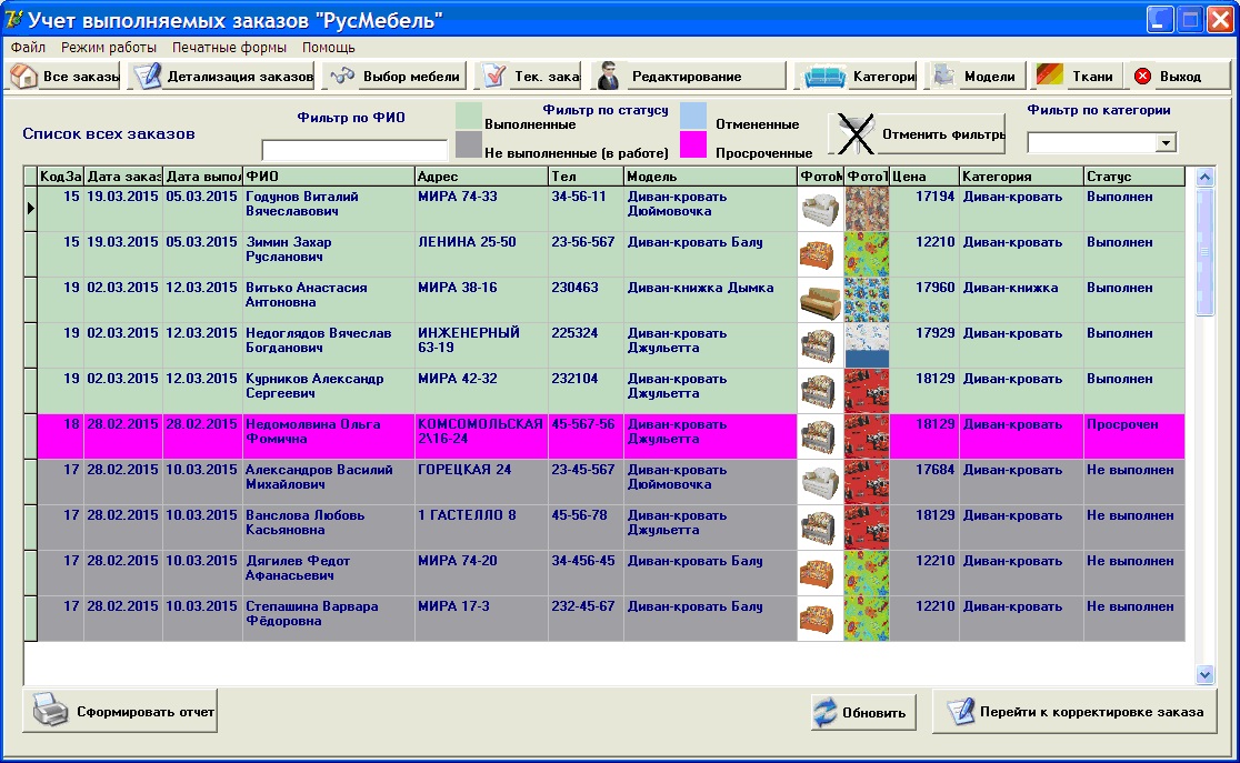 Учет заказов таблица 104 фото