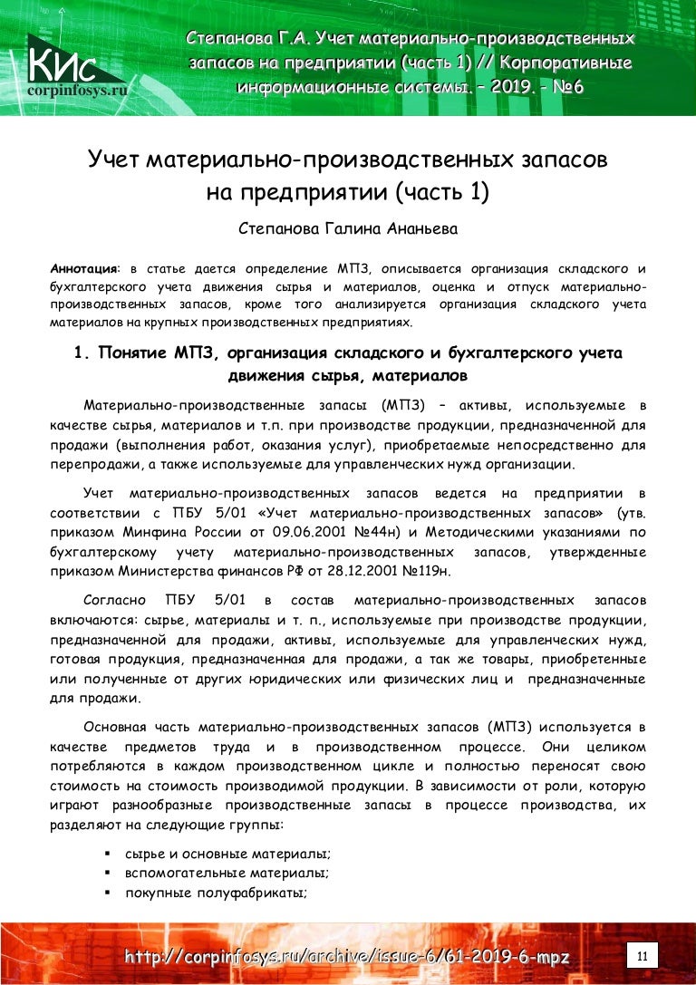 Учет запасов статьи