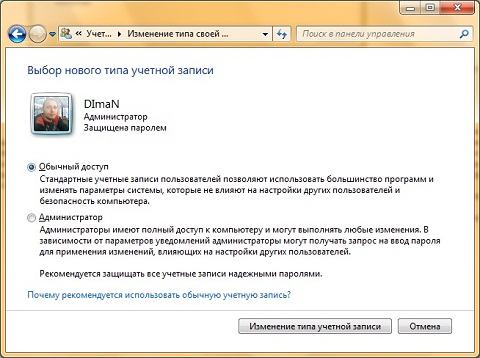 Учетная запись модуле