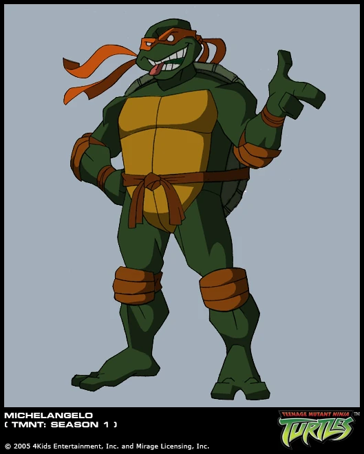 Учитель Хамато Сплинтер - сенсей черепашек ниндзя дал им следующие имена . Микеланджело, главный балагур и весельчак команды, родился 24 ноября . Носит оранжевую повязку и владеет нунчаками .