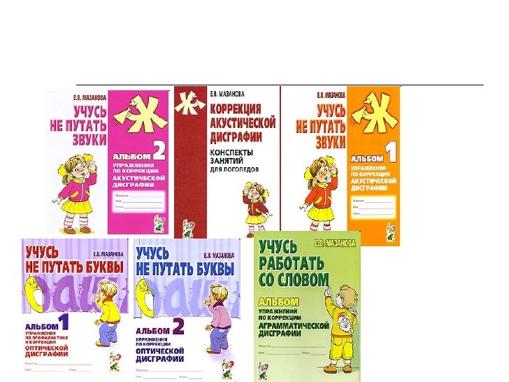 2 .Учусь работать с текстом : альбом упражнений по коррекции дисграфии на почве нарушения языкового анализа и синтеза . 3 .Учусь не путать звуки . Альбом 1, 2 .