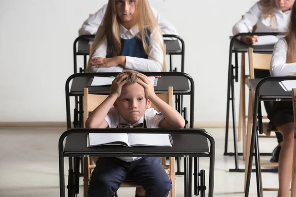 Dziewięcioletnia Uczennica Pracuje Przy Biurku Szkoły W . . .