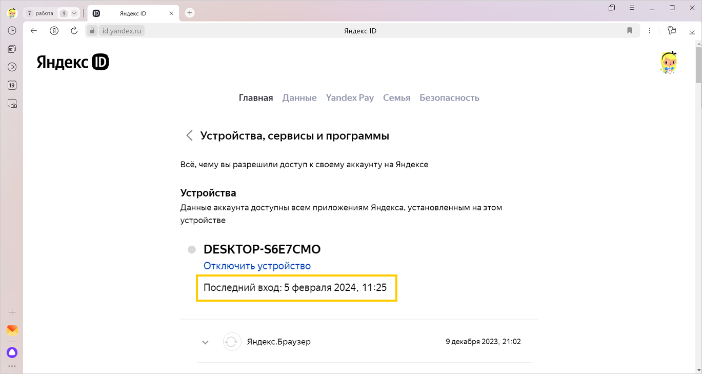Удаление данных яндекса
