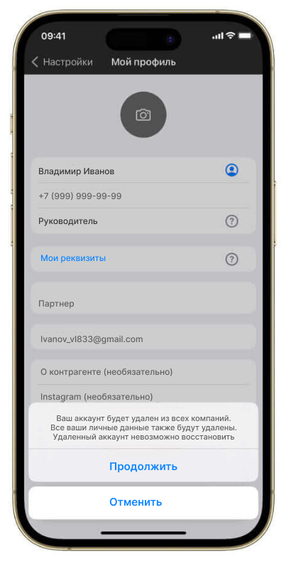 Удалить аккаунт оплати