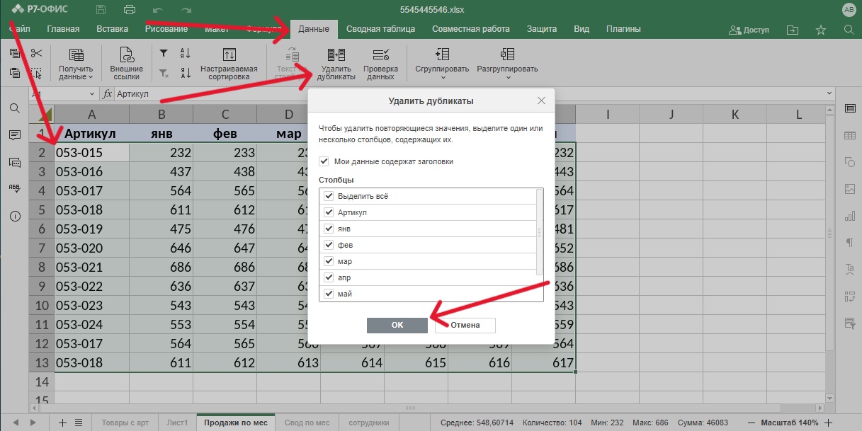 Удалить дубликаты в списке