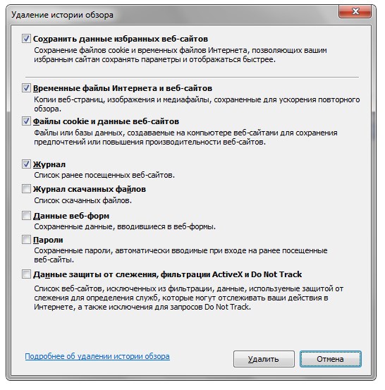 Удалить интернет историю