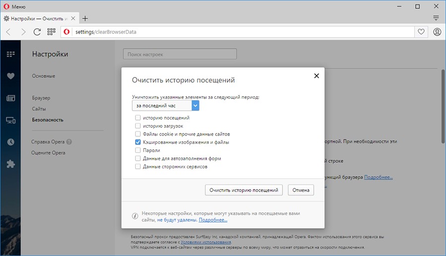 Удалить кэш опера