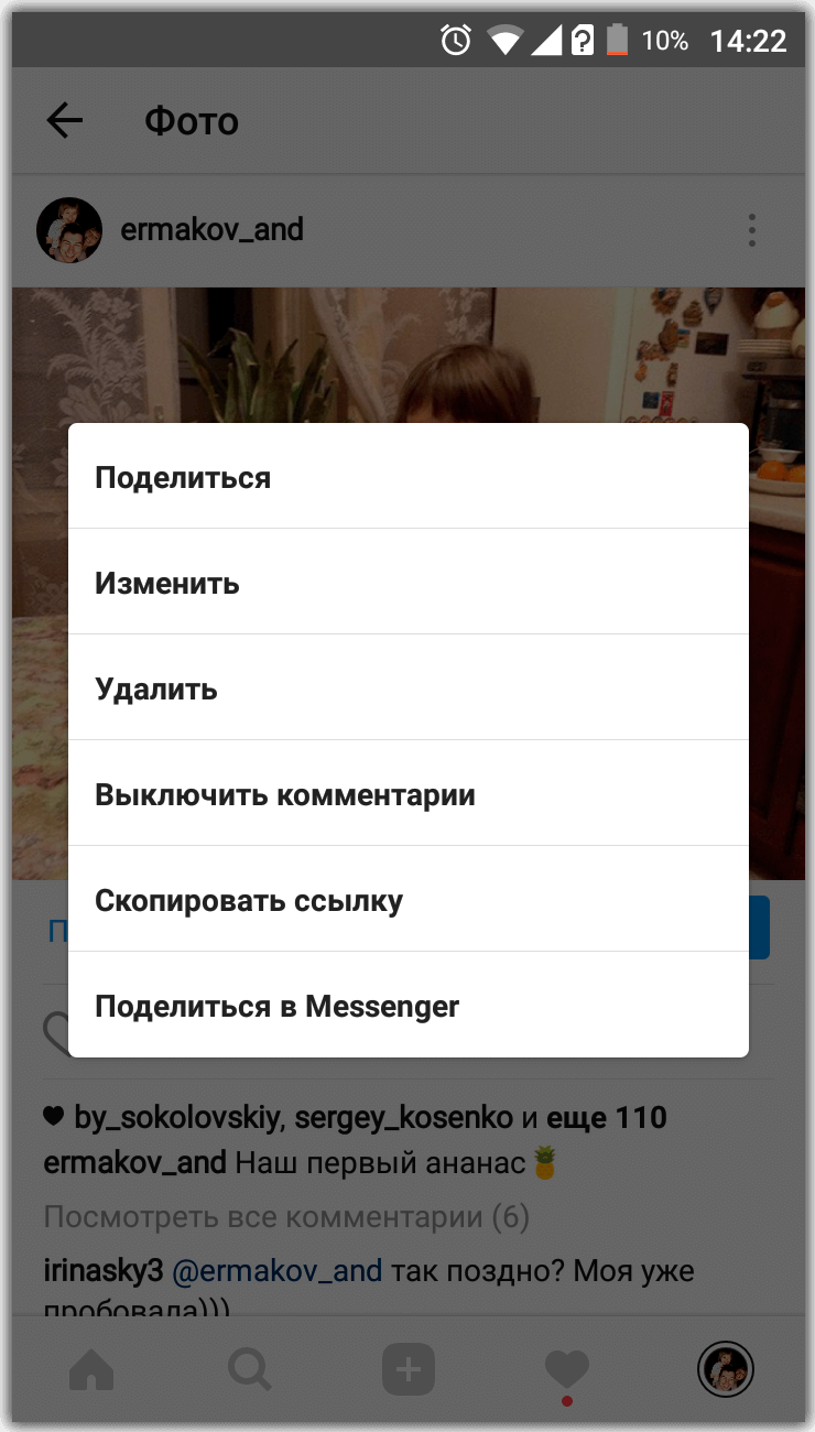 Удалить комментарий в инстаграмм