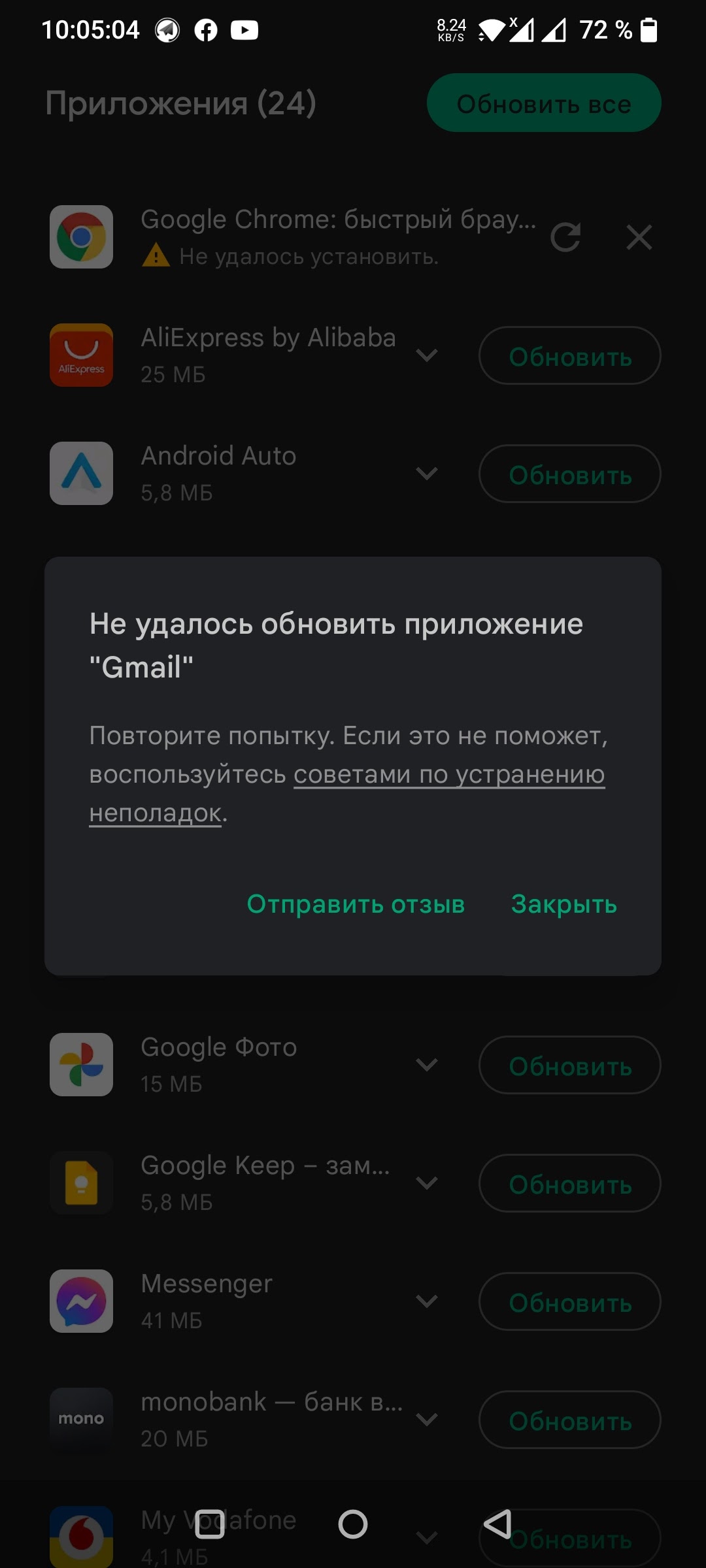 Удалить обновление google play
