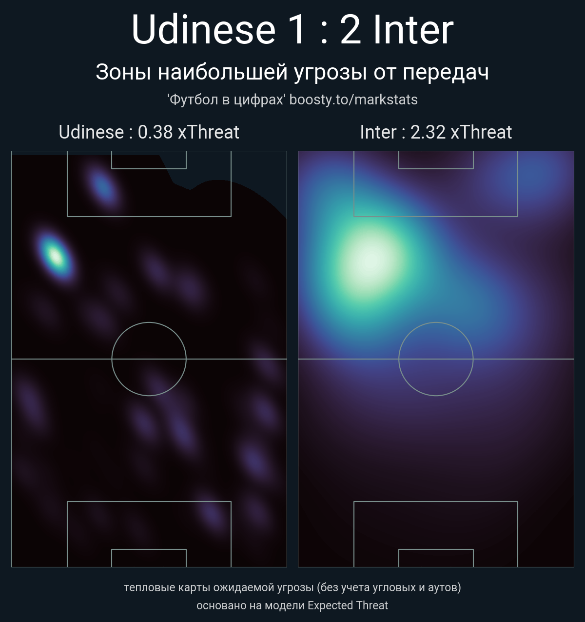 xThreat без учета угловых: 0.38 - 2.32