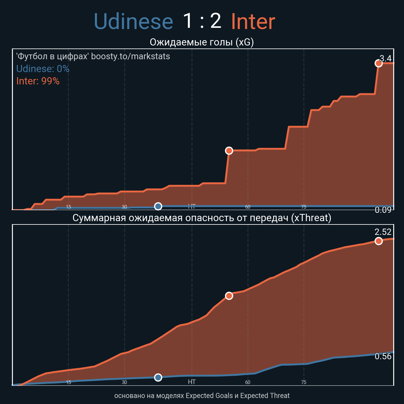 Ожидаемые голы (NPxG): 0.09 - 2.64