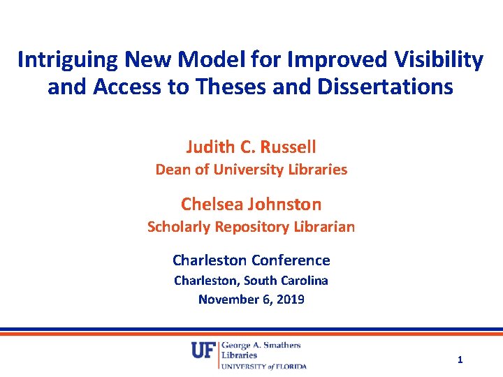The University of Florida Libraries are responsible for cataloging, preserving, and providing access to the dissertations and theses produced in support of graduate degree programs at UF . The University of Florida has required graduate students to submit their masters theses and doctoral dissertations as ETDs starting with the 2001 incoming class .