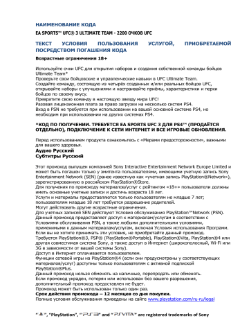 UFC 3 . Описание . . . 3 390 ₽ Есть в . . . Sony Пополнение счета PlayStation Store . . .