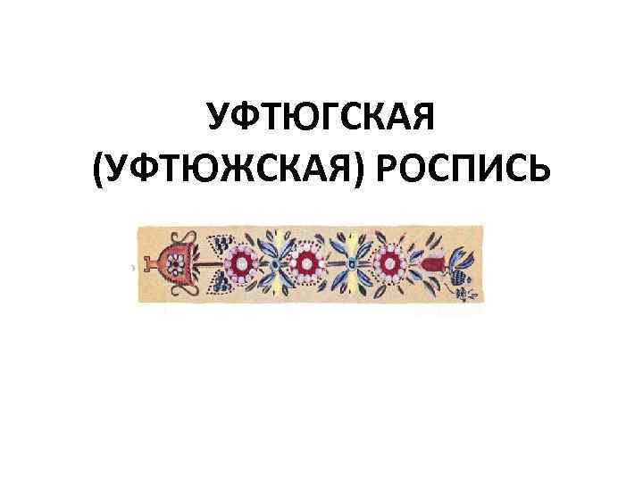 Уфтюжская роспись относится к группе северодвинских росписей (борецкая, пучугская, тоемская, пермогорская, ракульская и уфтюжская), центры которых расположены в среднем течении Северной Двины . Центр бытования уфтюжской росписи находится на правом берегу . . .