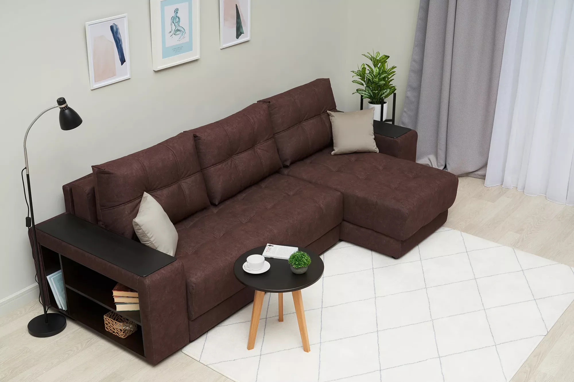 Угловые Диваны Коричневые Фото 103 фото