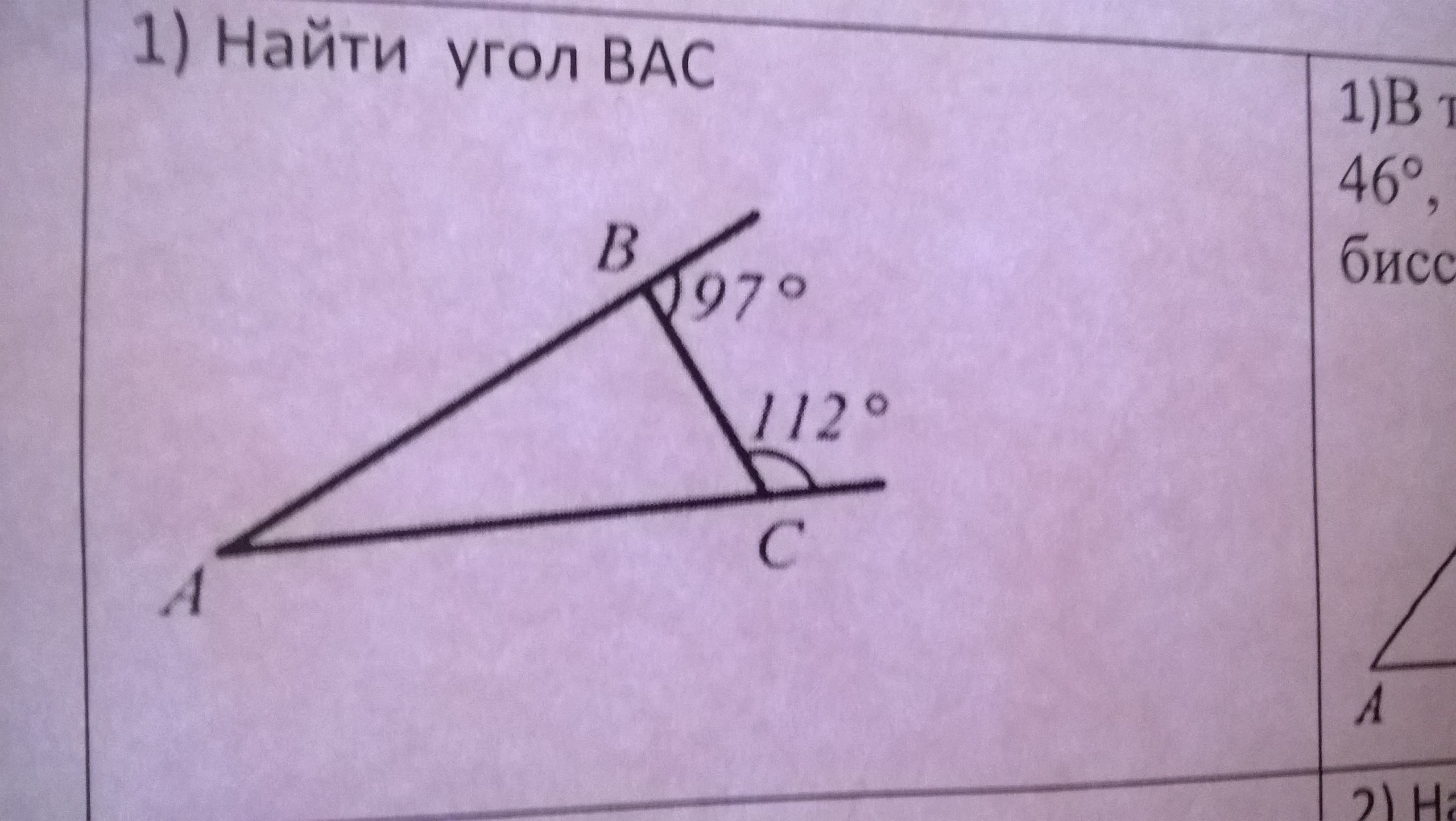 Угол bad 72 cad 45 найти bac