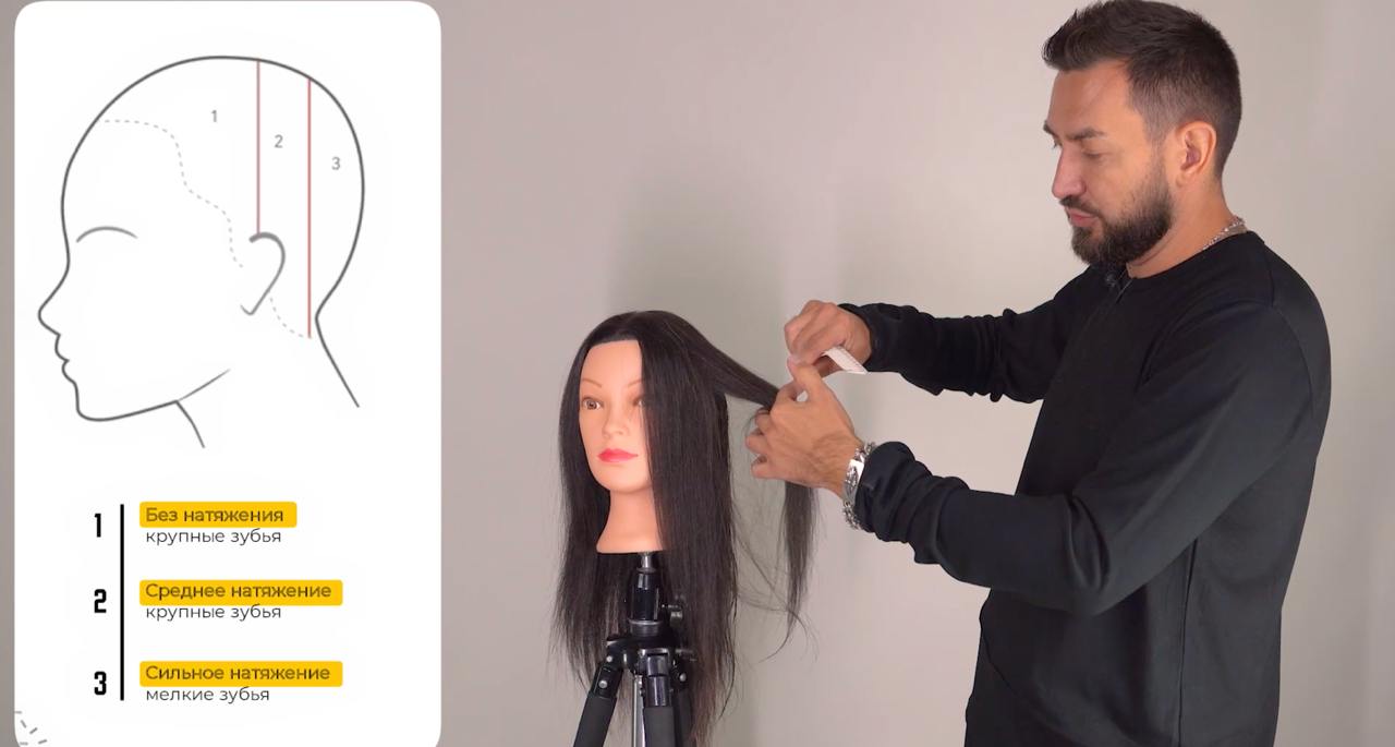 Угол оттяжки пряди