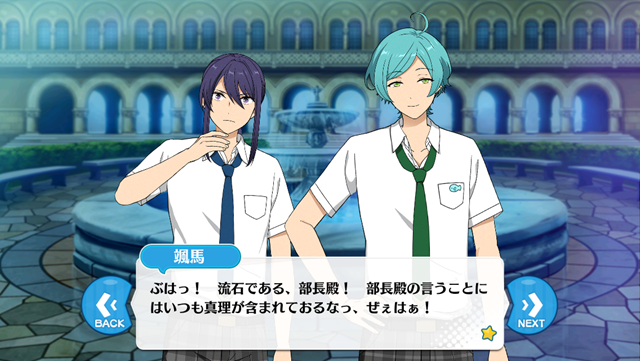 Ватару: Ты иногда совершаешь ужасные поступки сохраняя при этом улыбку до ушей. Ну, несмотря на то, что сейчас лето, ты можешь подхватить простуду, раз уж ты промок до нитки, так что пожалуйста, постарайся делать это пореже.