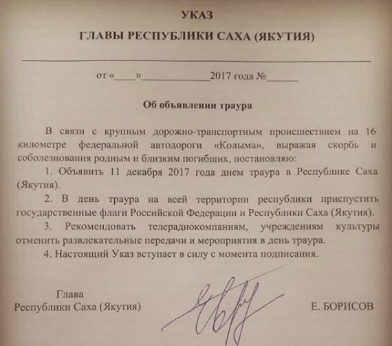 Указ об объявлении траура 2025