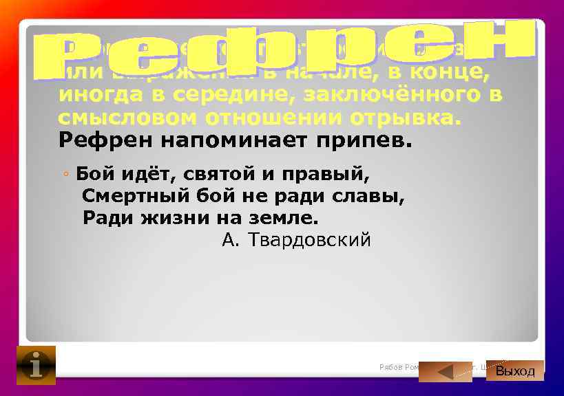 Укажите значение рефренов