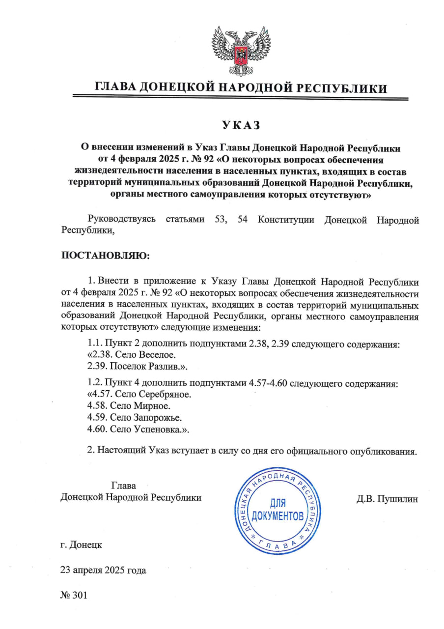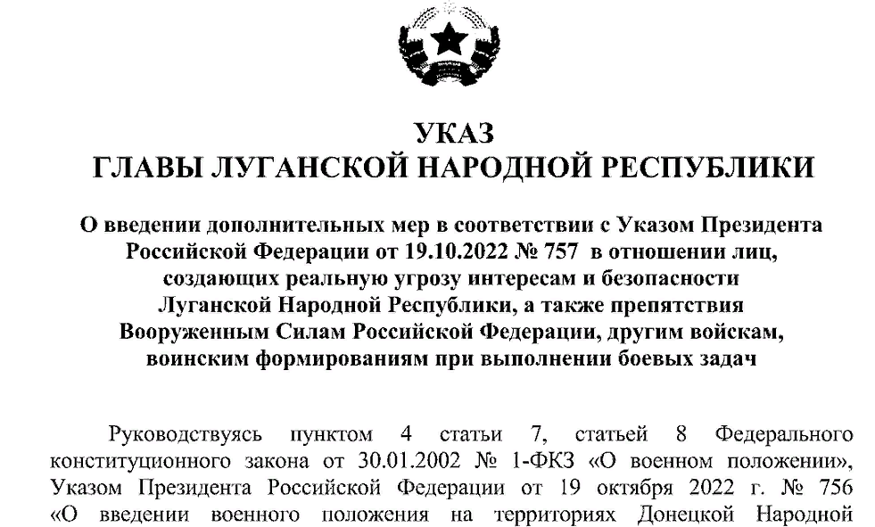 Указы главы лнр 2026