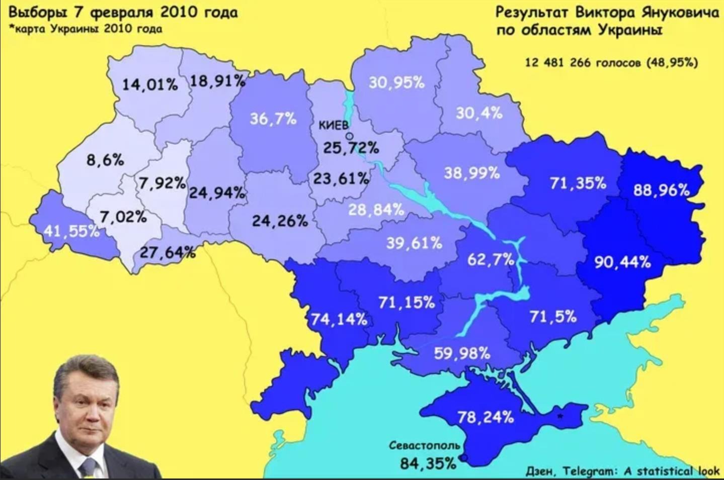 За нацистов проголосовали только 3 западные области - Львовская, Ивано-Франковская и Тернопольская. Остальные голосовали за бывшего коммуниста, не теряя надежды остаться в союзе с Россией. То есть число пророссийских, просоветских граждан было подавляющим.