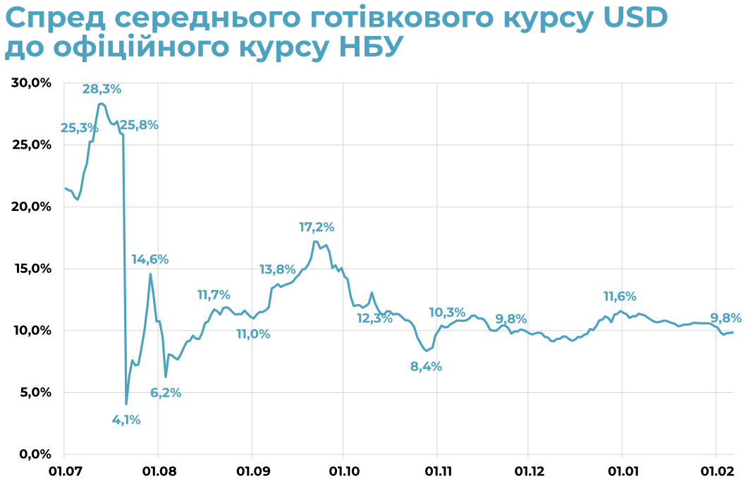 Згідно опитувань представників мереж обмінних пунктів, середня сума продажу готівкової валюти наразі складає $150-200, тоді як купівлі – від $1500. Відповідно, якщо пропозиція готівкової валюти є умовно сталою і формується переказами від трудових мігрантів, то попит – є важливою складовою збережень та тіньового імпорту. Для обидвох складових (похідних від середньої заробітної плати та обсягів імпорту) у січні-лютому є характерним сезонний спад з активним відновленням у березні.