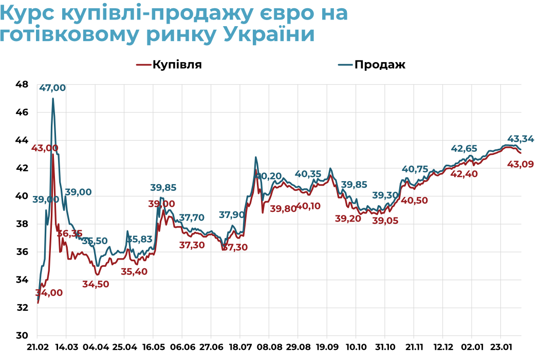 За останній тиждень (30 січня – 5 лютого) чистий продаж валюти Національним банком виріс до -$778 млн (порівняно з -$664 млн та -$715 млн у попередні два тижні відповідно). Всього за січень регулятор витратив на підтримку ринку $3,08 млрд, практично на рівні грудня 2022 року ($3,16 млрд).
