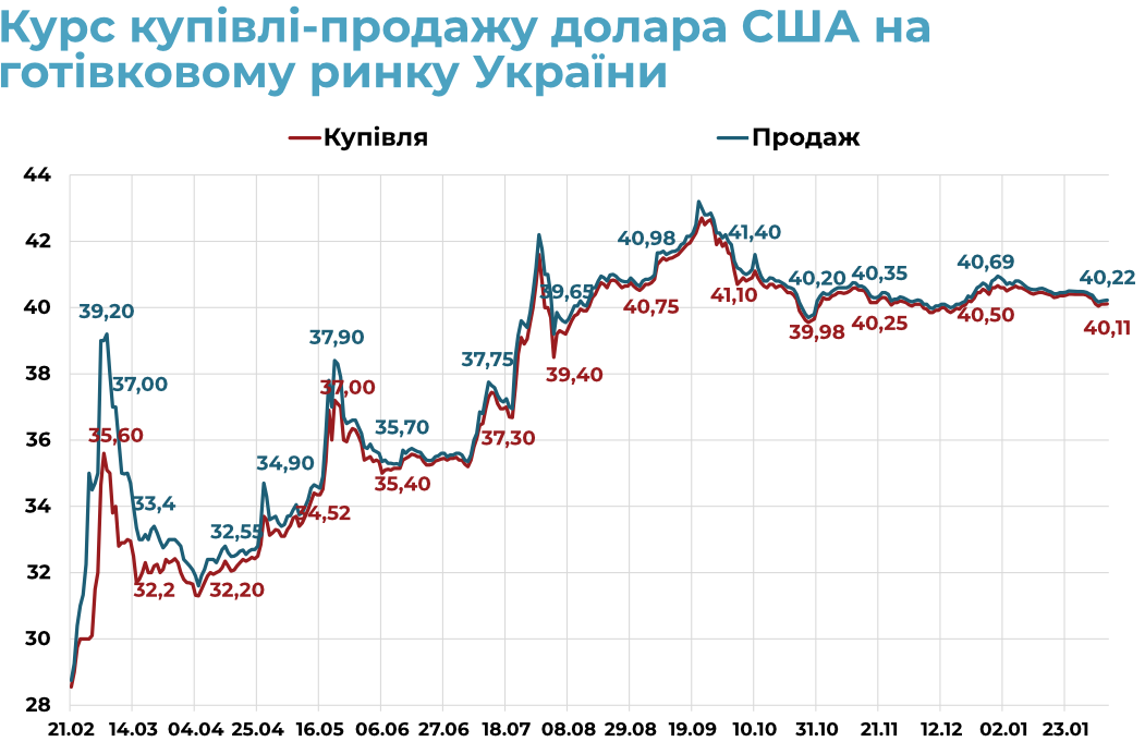 UEO Weekly #124Офіційний курс гривні залишається фіксованим на рівні 36,57 UAH/USD. Готівковий курс гривні укріпився до 40,1-40,2 UAH/USD, проти 40,3-40,4 UAH/USD наприкінці січня (купівля/продаж).