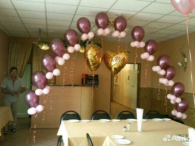 Оформление зала шарами: красивые способы украшения на фото