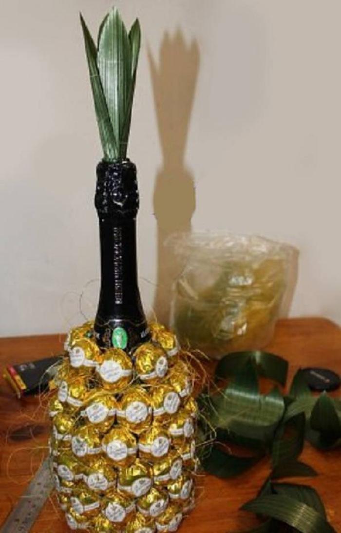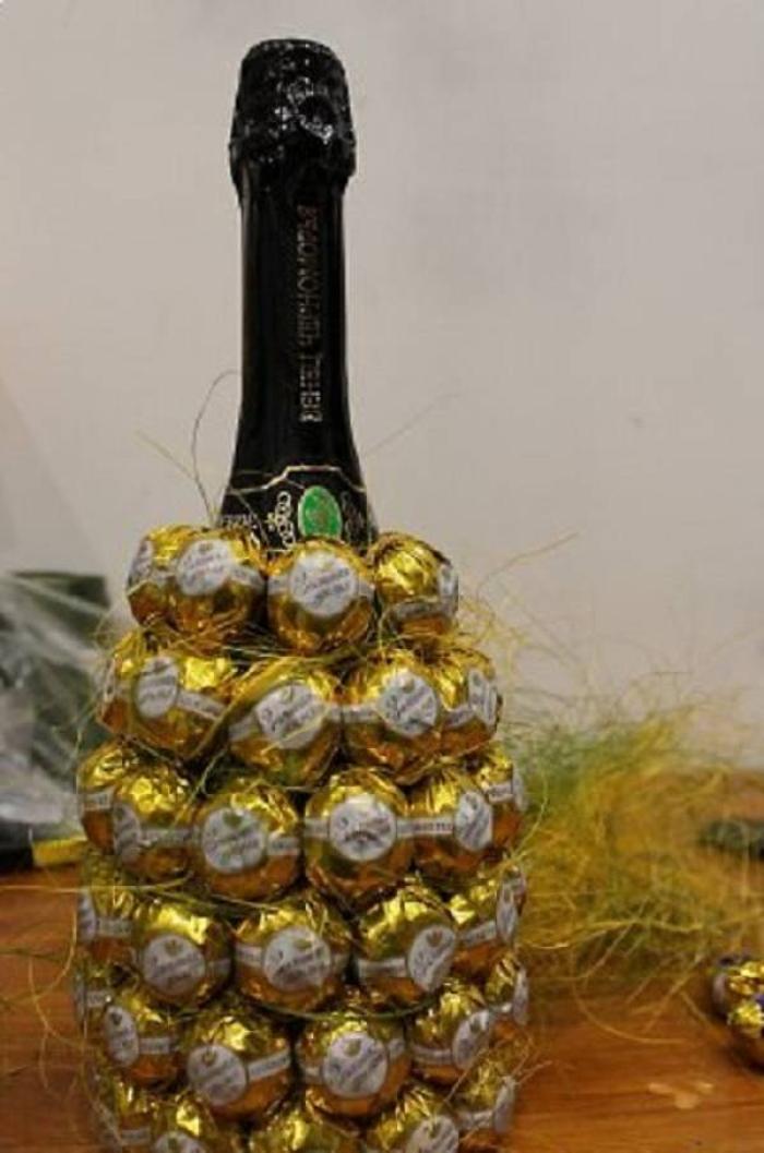 Украсить бутылку конфетами 144 фотографий