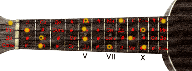 Укулеле ноты струн какие