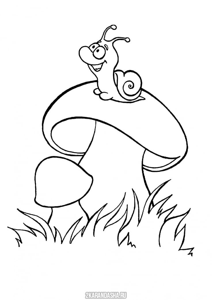 Раскраска улитка на грибочке распечатать