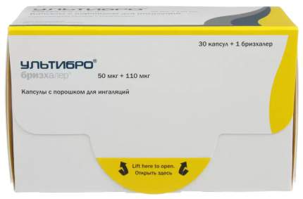 Ультибро бризхалер купить, цена на Ультибро бризхалер в Санкт-Петербурге от 3 171 руб ., инструкция по применению, отзывы Способ применения и дозы Побочные действия Ультибро бризхалер капсулы 50мкг+110мкг №30 Фармакологическое действие Противопоказания Применение при беременности и кормлении грудью Состав Лекарственное взаимодействие Передозировка
