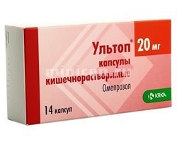 Ультоп капсулы 20 мг (омепразол): Ингибитор протонной помпы . Капсулы . Ультоп капсулы 20 мг - официальная инструкция по применению, аналоги, цена, наличие в аптеках