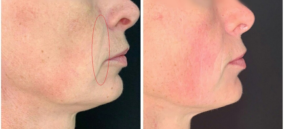 Фото лица до и после Это результат разглаживания кожи лица после 1 месяца проведения процедуры ультразвукового лифтинга с помощью аппарата Ультраформер .