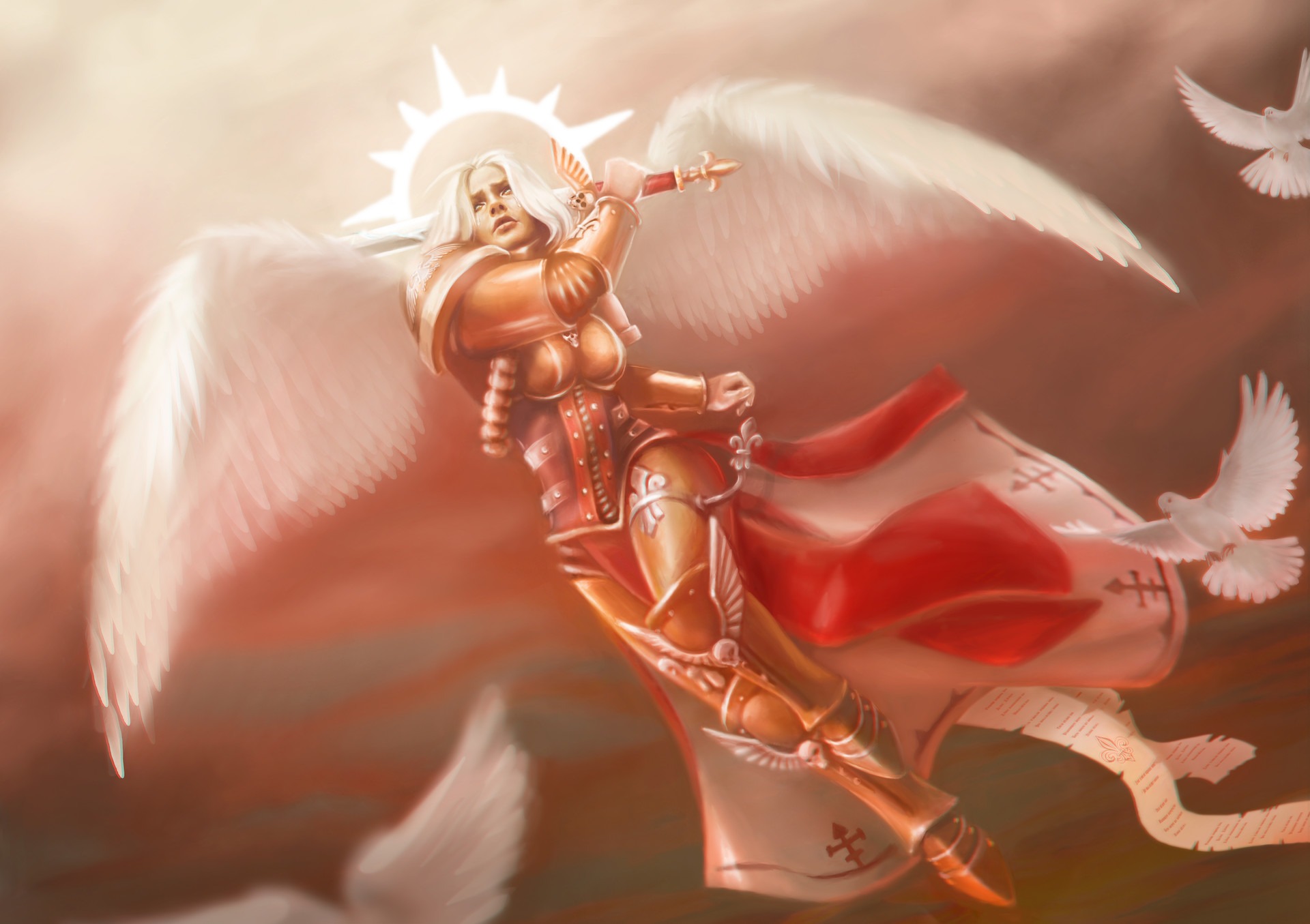 Наконец, сама Живая Святая показалась из своего закрытого уединения. Последние месяцы она проводила в медитациях, укрывшись в келье в глубине «Чести Макрагга». Вместе с сёстрами-близнецами, неразрывно связанными с ней духовно, она неустанно молилась, пытаясь накопить сил для будущих сражений. Целестина не до конца принадлежала материальному миру, являясь осколком чистой силы самого Императора, заключенной в смертной женщине. Она находилась в пограничном состоянии, являясь одновременно частью Материума и Имматериума. Во время своих медитаций она пыталась узреть будущее и знала, что впереди примарха поджидают бесчисленные опасности и ему будет необходима помощь Живой Святой.