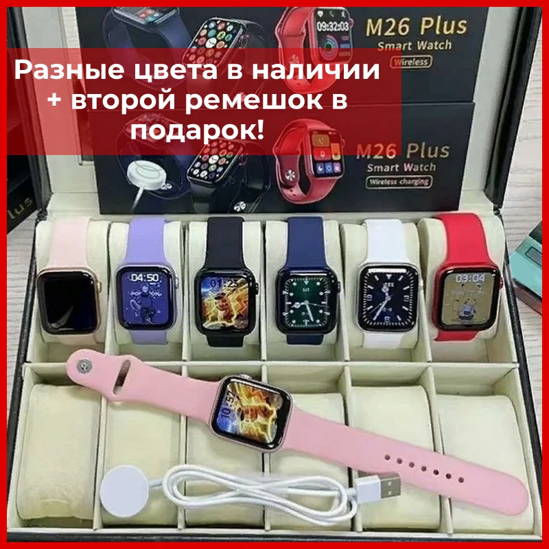 Доставка Яндекса, завтра . 11 предложений . от 3 440 ₽ . Выбор покупателей . Умные смарт часы M26 PRO Smart Watches PRO6 (IOS/Android) с Full touch экраном , беспроводной зарядкой , приемом-ответом звонков , тонометром . . .