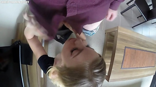 Belle blonde française taille une pipe à son patron