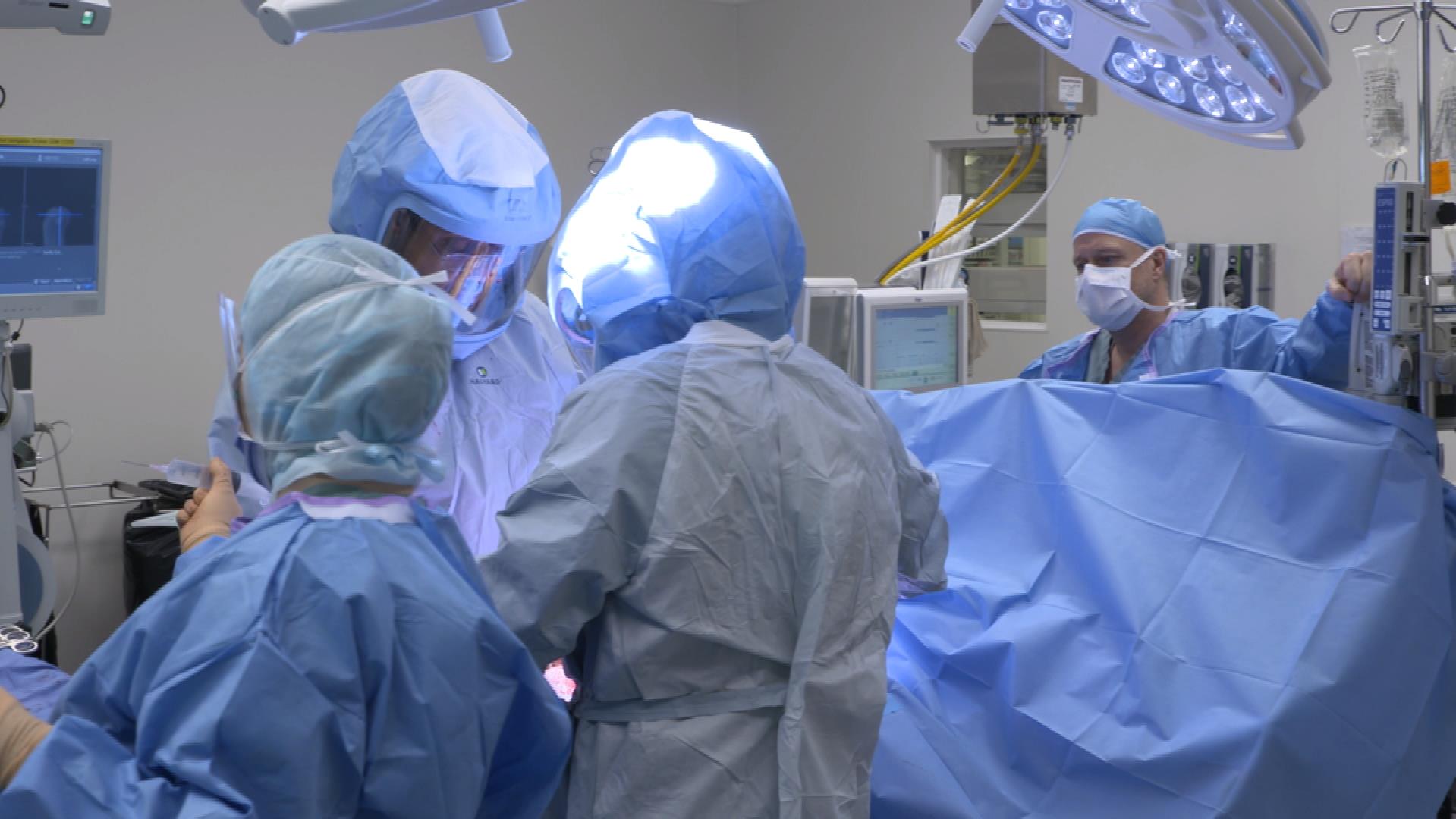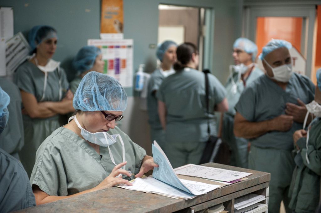 Un chirurgien explique une radio avant de prendre l’infirmière sur son bureau