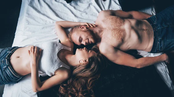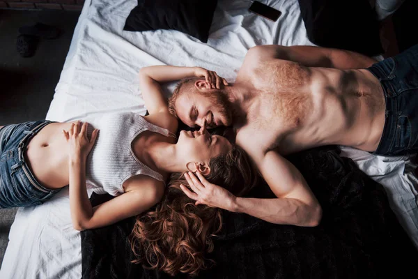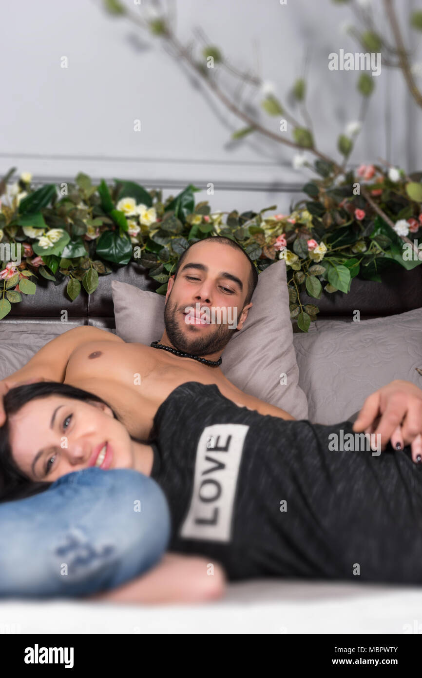 Un couple amoureux dans un lit douillet