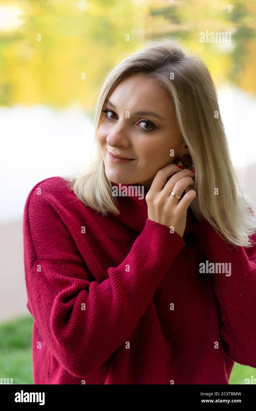 Bionda sexy scopa all'aperto