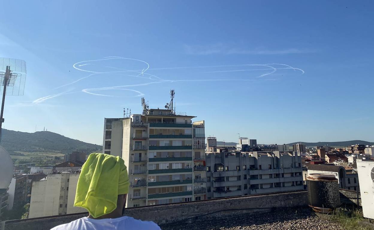 Un pene en el cielo de Cáceres? Numerosos ciudadanos mostraron su asombro por la aparición el jueves en el cielo de Cáceres de una figura muy semejante a un pene ( en la imagen) . Como ha ocurrido ya en otros lugares, varios testigos aseguran que fue trazada por una aeronave que sobrevoló la zona durante largo rato .