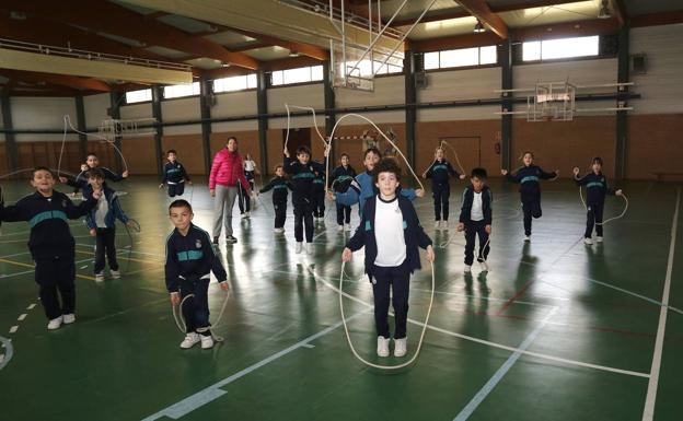 Dos colegialas con coletas comparten una polla grande
