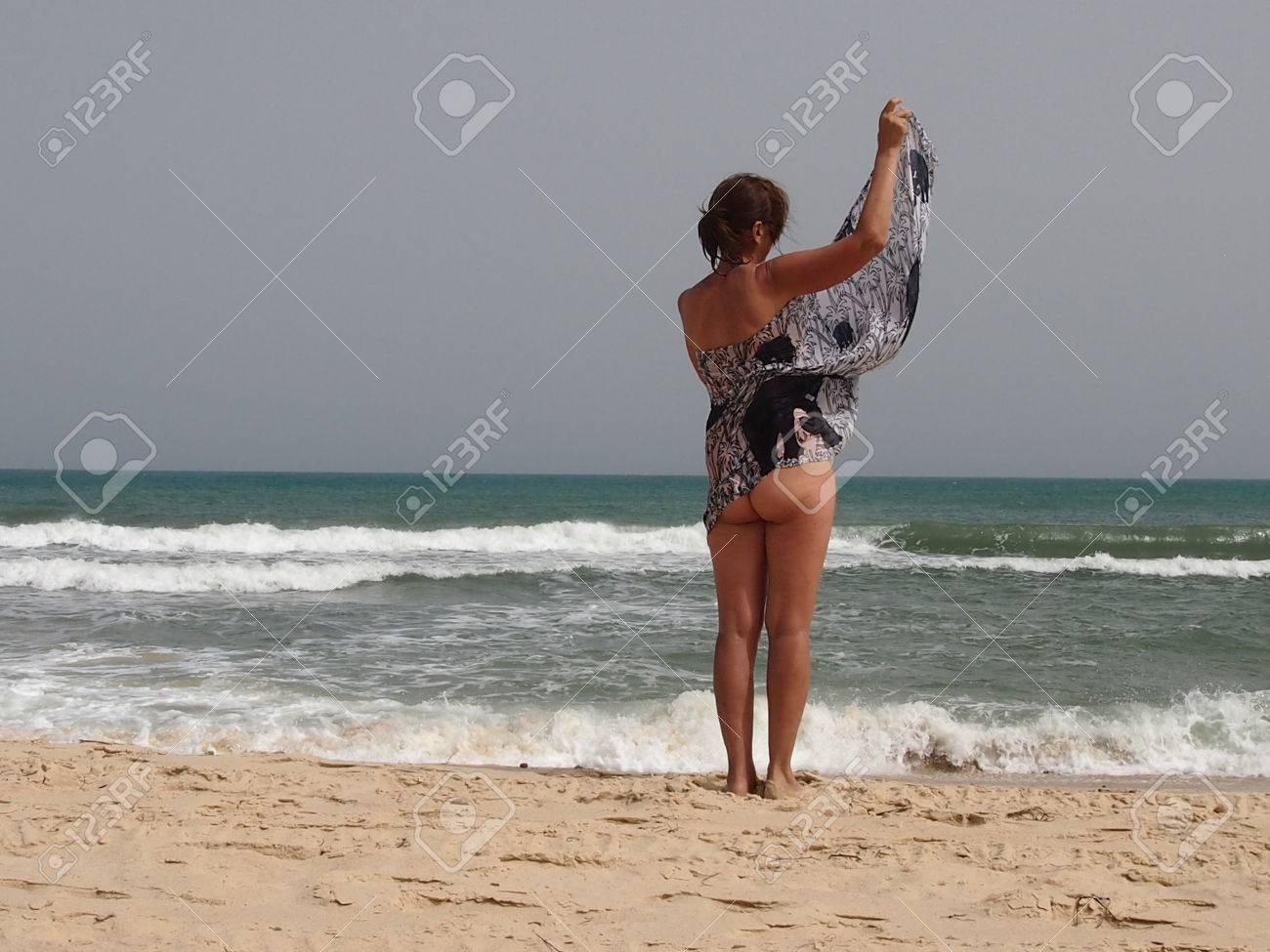 Foto circa Giovane donna nuda sulla spiaggia selvaggia . Immagine di navies, esterno, nudist - 17656101